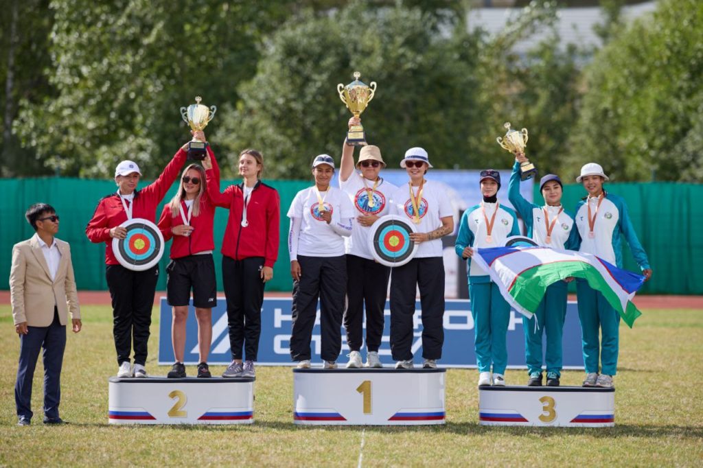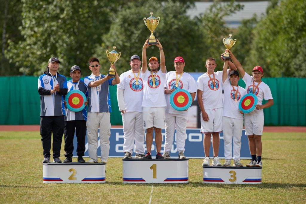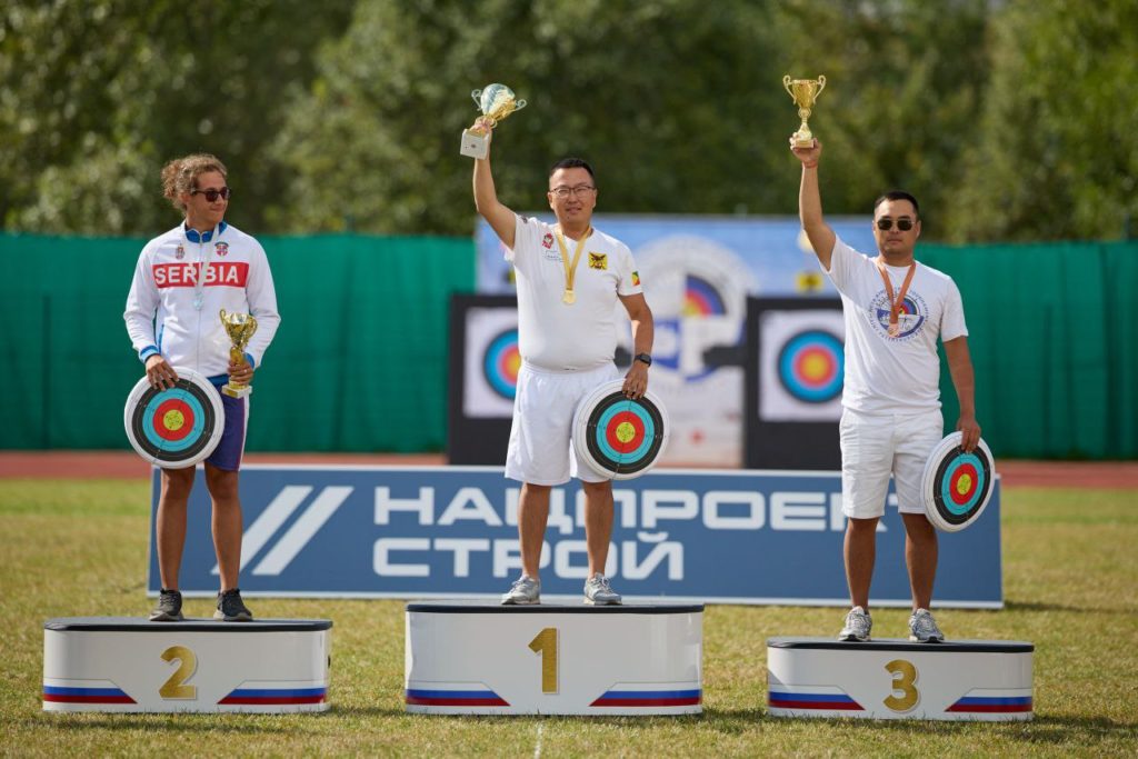 В августе этого года в Санкт-Петербурге прошли заключительные соревнования чемпионата России по стрельбе из лука. На соревнованиях помимо российских спортсменов присутствовали так же спортсмены из нескольких соседних стран. Наша мастерская осуществила изготовление и поставку пьедестала почёта для этих соревнований. Заказчик выбрал для этих соревнований пьедестал «Квинтет» в классической белой ливрее с триколором РФ.
